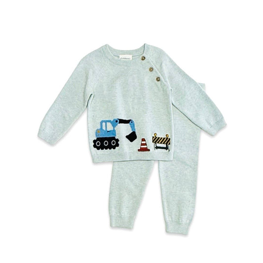 Construction Truck Embroidered Knit Baby Pullover & Pant SET: Blue Heather / 6-12M