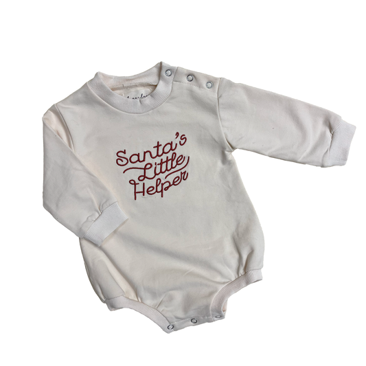 Luna + Luca “Santa’s Little Helper” Organic Cotton Bubble Romper – Cream